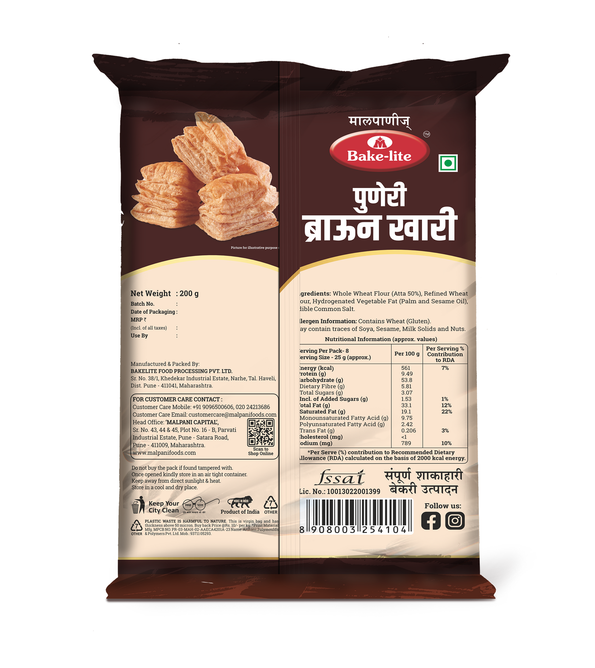 Our Brown Khari is enriched with the goodness of wheat fibre, giving you a light, flaky crisp bite you love—without the guilt. With every golden layer, you get the perfect balance of airy texture and wholesome flavour. A smarter choice for your chai-time cravings!